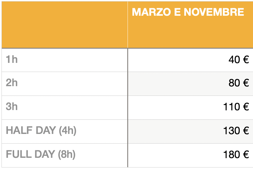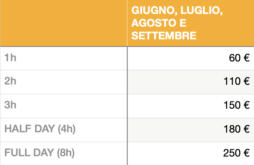 Offerte Noleggio Barche a Venezia - Prezzi e Pacchetti Prezzi Bassa Stagione Prezzi Media Stagione Prezzi Alta Stagione Promo Pacchetti Promo Pacchetti Promo Pacchetti